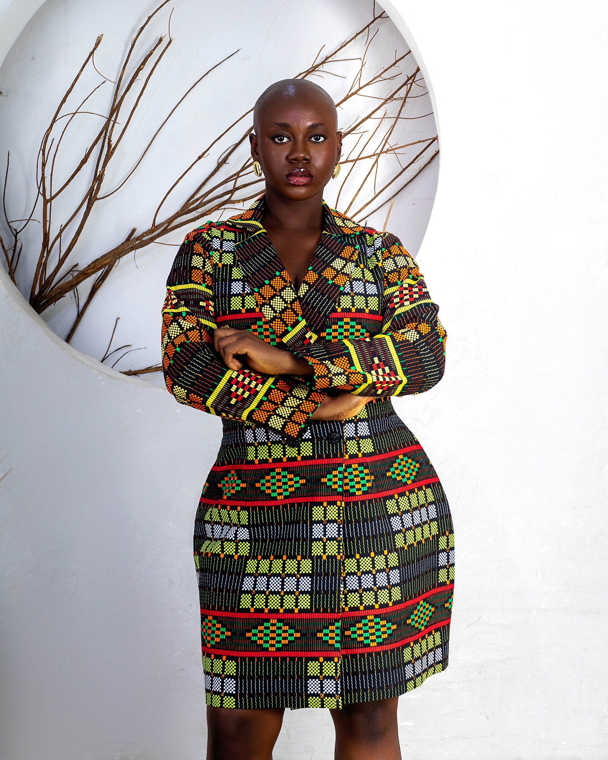 Tags: artisanal luxury, blazer dress, fabsafrica, geometric pattern, hand-woven fabric, long sleeve blazer, multi-color dress, power dressing, tailored mini dress