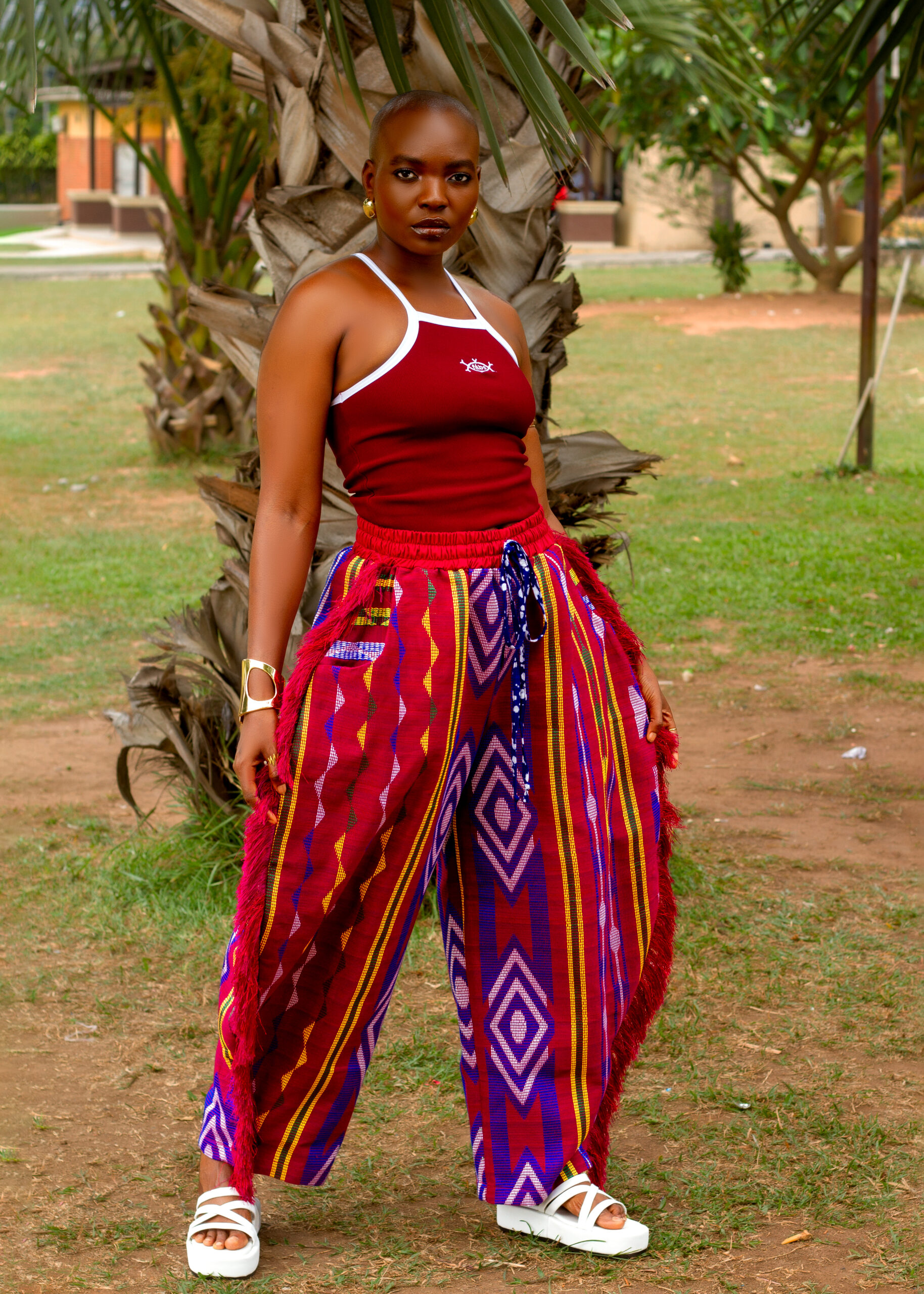Woven and rooted in history, this pant honors the legendary artistry of Akwete textile. The voluminous, fringed trousers celebrate the intricate skill of the weavers, designed for those who wear their heritage with pride.